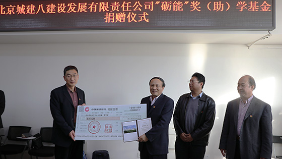 李金海董事长在随后的讲话中结合自身在北京城建八建设发展有限责任公司的成长经历,从多个角度阐述了公司的发展概况、企业文化和经营理念。他表示,设立奖学金的初衷,不仅是为了帮助同学们解决学习和生活上的问题,更是一种精神上的传承,鼓舞同学们“学习、创造、迎接更多的挑战”。
